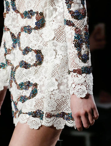 Organza, three-dimensional floret, colored glass stone together with a carefully crafted luxury feeling and romantic flavor of the idiosyncratic, always let a person cannot resist. The special design not only endows the lace fabric with a more diverse temperament, but also brings new inspiration to the new feminine temperament. The exquisite lace creates a romantic color with a very soft and beautiful atmosphere, and its unique charm and exquisite craftsmanship also creates more design possibilities for the clothing.
